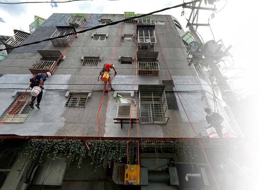 引進免搭鷹架的蜘蛛人繩索工法,適合狹窄巷弄或管委會規範嚴格之社區。施工靈活度高、費用更親民、且不影響住戶採光與隱私,是現代城市外牆修繕的首選方案。